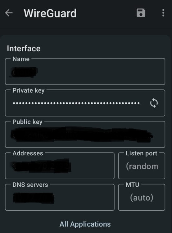 - در قسمت Public Key و Endpoint , Allowed IPs مشخصات دریافتی را وارد کنید